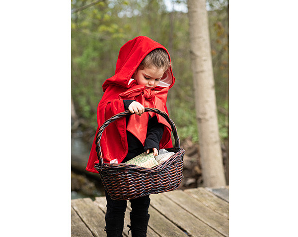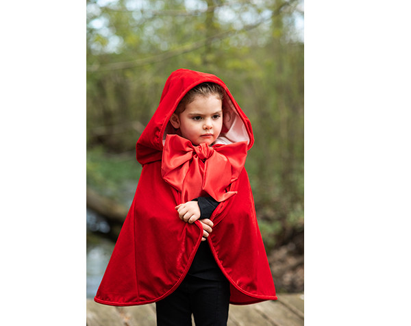 Esta capa inspirada en Caperucita Roja es espectacular gracias a su lazo de satén de gran tamaño. Talla: 4-6 años.