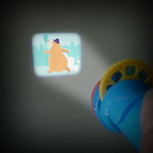 Caja de cine con una libreta para escribir el programa de cine, 16 entradas, una linterna proyectora y 32 discos con 8 diapositivas cada disco, con el que contar una historia distinta en la pantalla de la propia caja, o en la pared de tu habitación. A partir de 4 años.