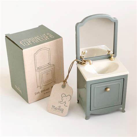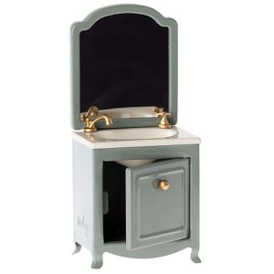 Un precioso artículo para el baño real del castillo del ratón de Maileg. Tiene un pequeño armario debajo del lavabo y, por supuesto, también un espejo. Apta para ratoncitos tamaño papá y mamá, abuelos, hermano y hermana mayor y pequeño. Edad: a partir de 3 años.
