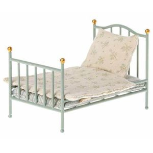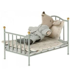 Una cama perfecta para una buena noche de sueño. La ropa de cama está realizada en preciosas telas estampadas de Maileg. Esta cama se adapta a ratones y conejitos de tamaño micro. Edad: a partir de 3 años.