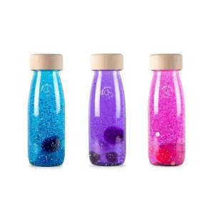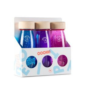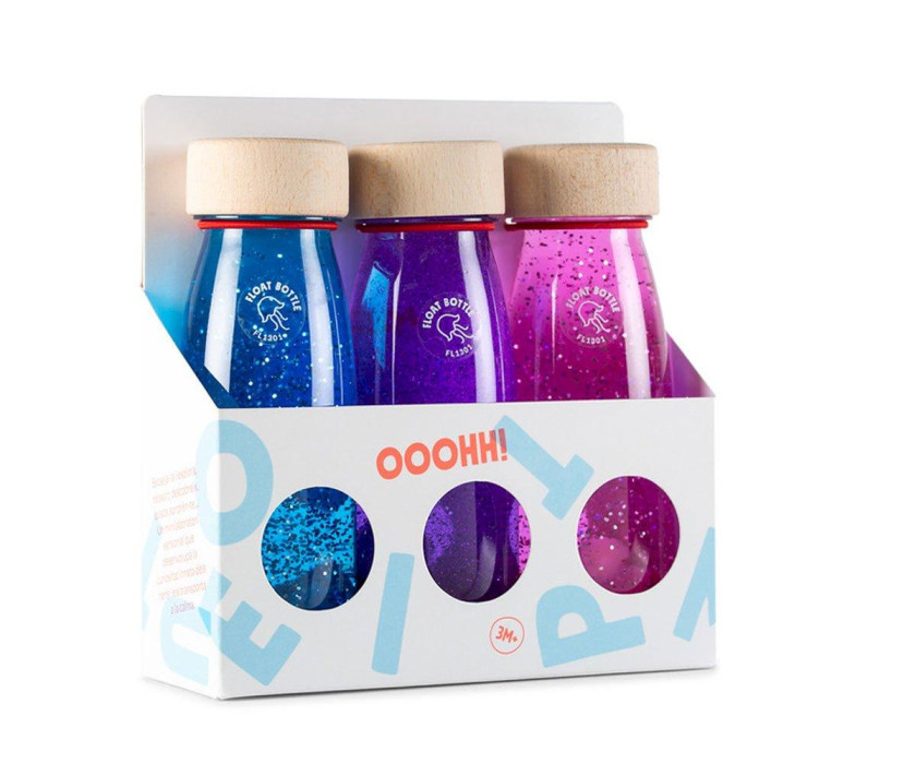 Pack formado por 3 botellas sensoriales que estimulan la calma, la observación, la atención, la imaginación.. Nace con la intención de crear emociones y estimular el sistema cognitivo de los más pequeños de la casa. Agítala y explora, relájate, descubre, busca, sorpréndete... Contiene: Botella Sensorial Flotante Azul, Botella Sensorial Flotante Fucsia, Botella Sensorial Flotante Lila Edad: a partir de 3 meses.
