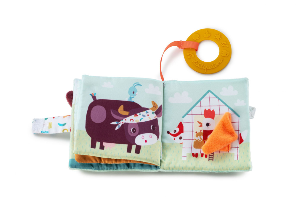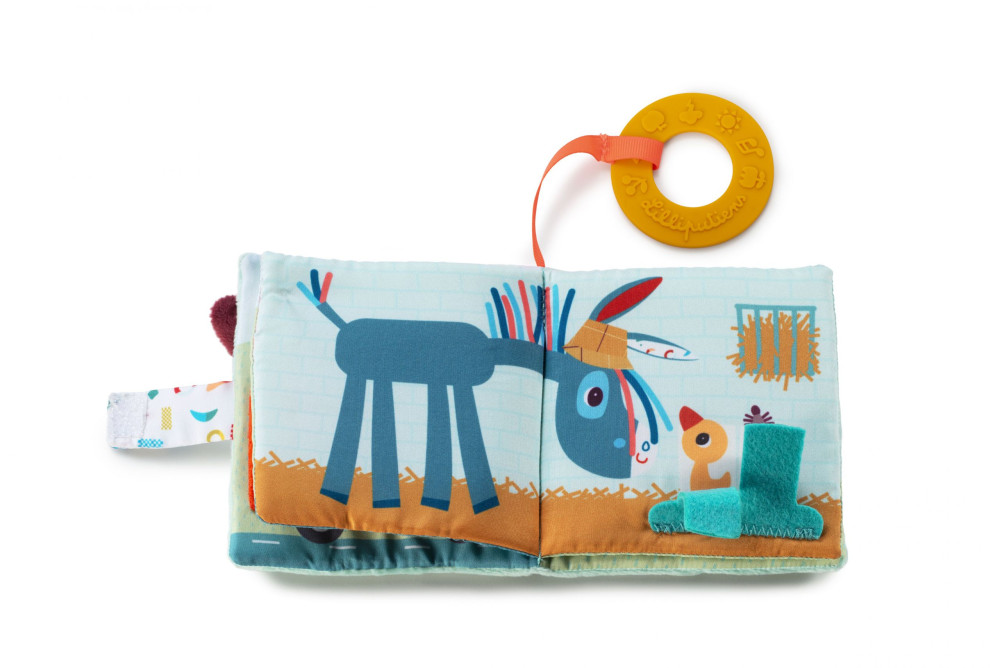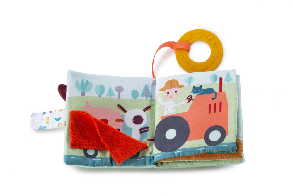 Libro de juegos de tela ilustrado con animales de granja. Cuéntale la historia mientras descubre los sonidos y las texturas de este libro, que dará rienda suelta a su imaginación.