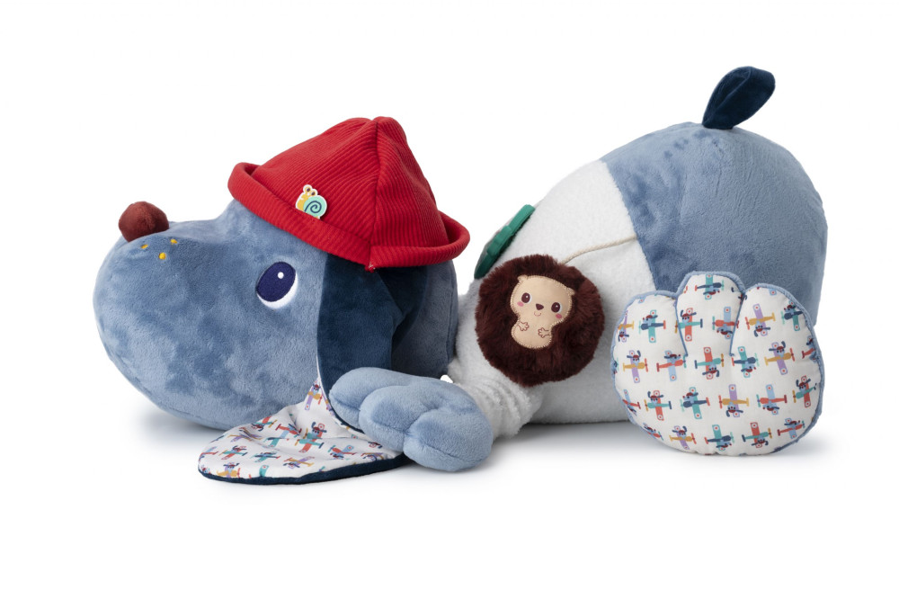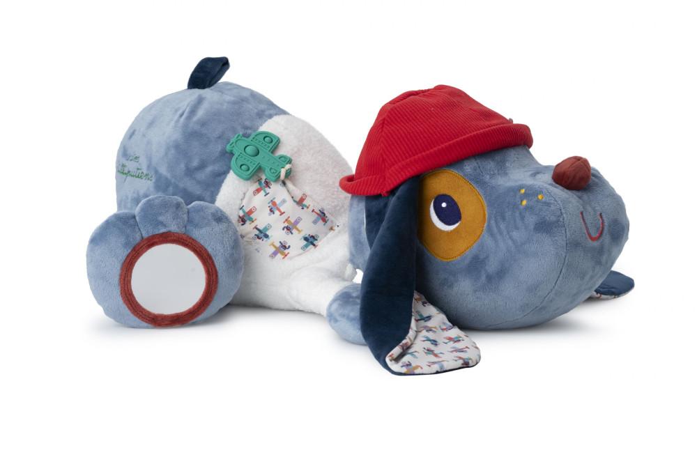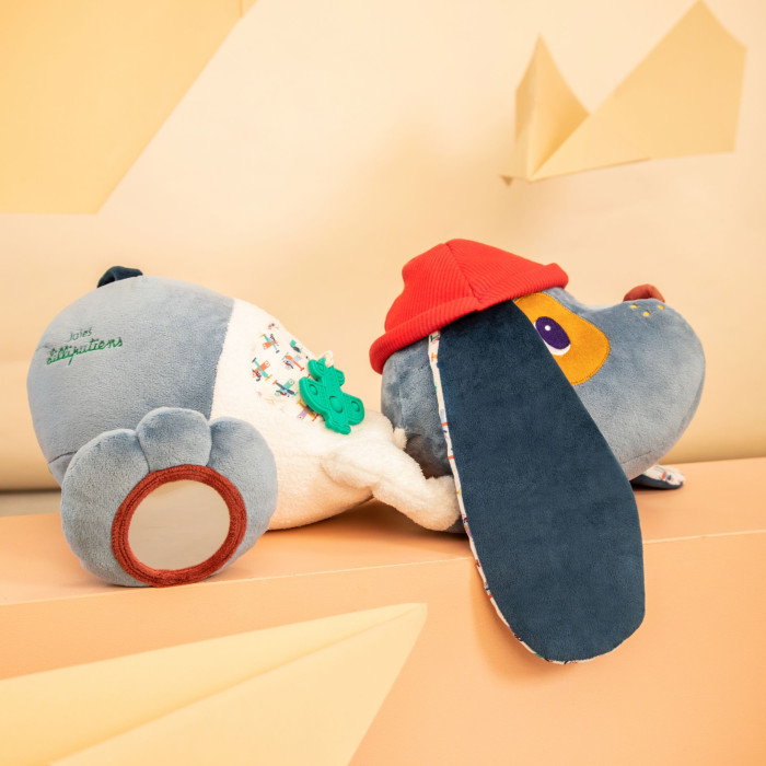 Adorable perro de trapo con multitud de sonidos y actividades para descubrir. Incluye mordedor de silicona. A partir de 6 meses. 70 cm.