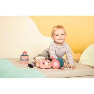Este juguete de actividades está formado por 4 cilindros blandos, uno de los cuales presenta la cara de Jeanne. Cada cilindro tiene un sonido único, materiales estimulantes y dibujos cautivadores. Gracias a los cierres de velcro, el bebé puede montar y desmontar las distintas piezas una y otra vez. Los cilindros ruedan y animan al bebé a gatear. Un juguete 4 en 1 para despertar los sentidos y la imaginación. A partir de 6 meses.