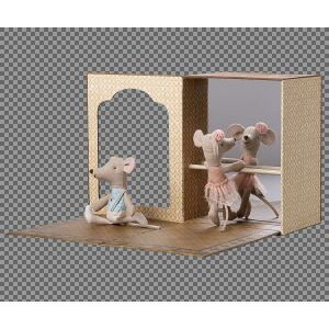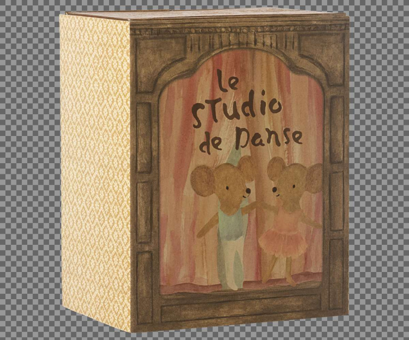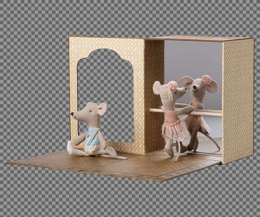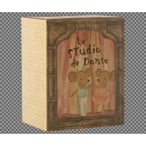 Abre las puertas de esta caja mágica y explora un mundo de baile, polvo de estrellas y cuentos. Este set incluye una caja de papel, que es a la vez un estudio de baile y una acogedora casita para ratones, así como dos ratones vestidos para bailar. A partir de 3 años.