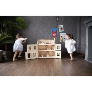 La casa de muñecas victoriana de madera maciza de Plan Toys, ¡es realmente magnífica! Con una altura enorme de 73 cm, este juguete es realmente un tesoro. Tiene unos detalles encantadores como las ventanas que suben y bajan o como las columnas a ambos lados de la puerta principal. Una escalera en el interior te lleva a cada piso y el frente se abre para que pueda jugar con sus muñequitos adentro fácilmente. Esta casa de muñecas está construida con madera de caucho macizo resistente. Dimensiones 73 cm de alto, 64 cm de ancho y 32 cm de profundidad No incluye mobiliario. Ideal para completar con Maileg.