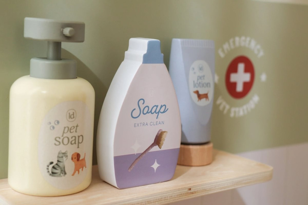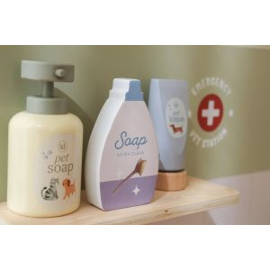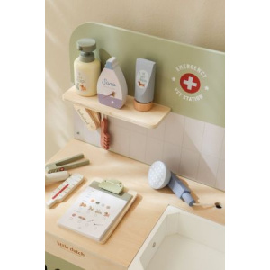 ¿Cuidas bien de peluches y mascotas de juguete enfermas? Con esta amplia clínica veterinaria de madera, tu pequeño podrá sumergirse por completo en el rol de un veterinario de verdad El set contiene todo lo necesario para cuidar mascotas, como una ducha retráctil con lavabo, un peine, un termómetro, una jeringa y vendas. También incluye una diadema de tela y un clip especial para mostrar ilustraciones médicas y radiografías. ¡Hora del siguiente paciente! A partir de 3 años.