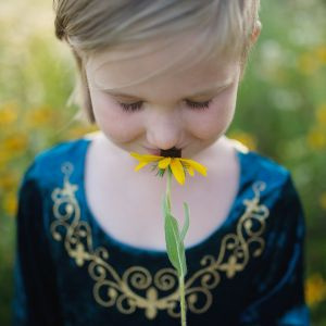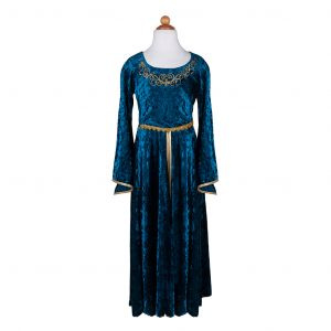 Prepárate para aventuras mágicas con este impresionante atuendo de princesa medieval. Tu pequeña aventurera adorará ser su propia heroína de cuento de hadas en este vestido de terciopelo de cuerpo entero diseñado en llamativo turquesa oscuro con exquisitos detalles dorados y bordados. Talla: 5-6 años.