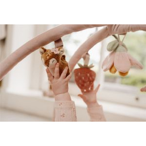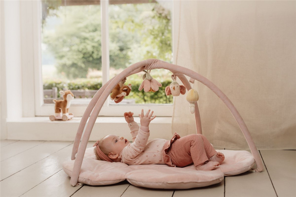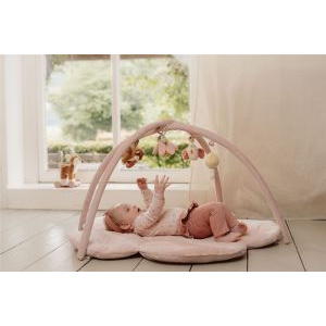 ¡Hay tanto para ver, tocar y oír! Cada día es una aventura con esta alfombra de juego con forma de flor. Presentada en un suave tono rosa, tiene dos arcos de pana con cinco peluches colgantes diferentes de la colección Fairy Garden. El pequeño ciervo, el pájaro, la flor, el hongo y la fresa ayudarán a desarrollar las habilidades sensoriales y la coordinación mano-ojo. A partir de 0 meses 88 x 88 x 47 cm